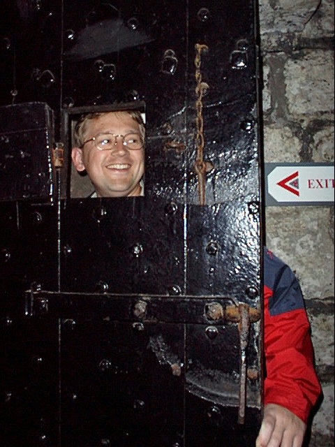 - darren.jpg Darren - the administrator for Enterprise, looking through a castle/dungeon door.
