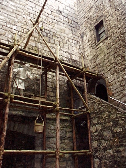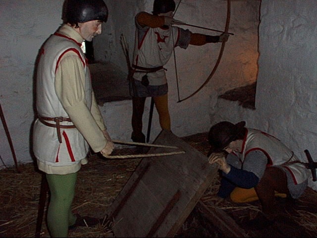 - iom17.jpg A recreation of castle activities, with the bowman defending the castle and two guards looking down into a trap door into a dungeon