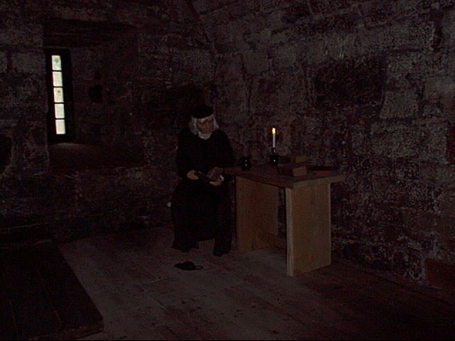 - iom15.jpg This is the room where a Christian priest was apparently imprisoned for the medieval equivalent of contempt of court - the room is made up to appear like it might have been