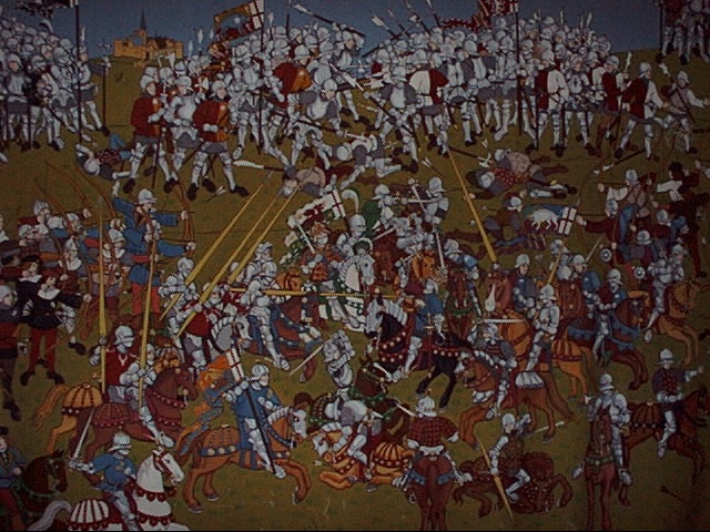 - iom23.jpg A tapestry on the wall inside of Castle Rushen depicting a 16th century battle