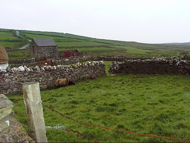 - iom37.jpg* A BEAUTIFUL scene of a small village near the south of the island - these luscious green grasslands went on forever, with fields of sheep and hand made stone fences.